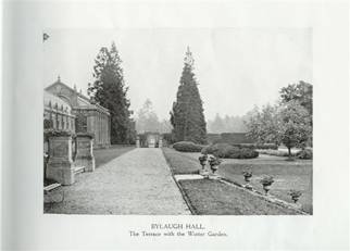 Bedrooms and the remainder the Servants' Accomodation. THE DOMESTIC OFFICES on a lower level have the great advantage of being both commodious and compact. The rooms are spacious and light, and include Kitchen, Scullery, Game , Meat and Pastry Larders, Dairy, Large servant's Hall, Housekeeper's Room, Butler's Pantry and Bedroom, Steward's room, Plate and Muniment Rooms, Valet's Room and Bedroom, Boot and Knife Rooms, Wine and beer Cellars, WC, etc. ELECTRIC LIGHT is connected to all parts of the House and Stabling. The plant comprises a 16hp oil driven Hornsby Engine, Switchboard and Dynamo by Thos. Parker, and Battery consisting of 54 cells. (approx 110 volts.) THE WATER SUPPLY is both excellent and plentiful. The drinking water is pumped from a deep well under the house, the domestic supply is driven by a water wheel near Elsing Mill to large storage tanks in the roof, from which it is laid on all over the house and premises. THE SYSTEM OF SANITATION has been examined every year and is at the present time believed to be perfect. The discharge is to settling chambers and thence into a dyke at a long remove from the house. SOIL THE STABLING is in character with the Mansion, no expense having been spared in its arrangement and fitting. It affords ample accomodation arranged around a spacious Stable Yard, and is lighted by electricity and ample water supply is laid on. THE CLOCK TOWER is a prominent feature. There are Five Stalls, Seven loose Boxes, Pony Stable for two, Sick Bay, Harness Room, Saddle Room, Three Double Coach-Houses and GARAGE FOR SIX CARS Covered Washing Yard, Store Shed, Liggage cart House, and above large Granary and Forage Lofts. The MEN'S ACCOMODATION comprises Mess Room and four Bedrooms. There is also a BLACKSMITH'S SHOP with Forge and two Shoeing Stalls. Brew House etc. THE CHAUFFEUR'S COTTAGE THE PLEASURE GARDENS are raised upon a Terrace and enclosed with dwarf open stone balustrading with piers at intervals terminating in ball finials and the dominent feature of these gardens is the natural beauty of the position commanding from the various fronts distant vistas and expanses of the beautifully timbered Park and countryside, with the River Wensum threading the valley between. ORNAMENTAL WOODS planted