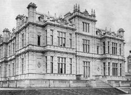 Bedrooms and the remainder the Servants' Accomodation. THE DOMESTIC OFFICES on a lower level have the great advantage of being both commodious and compact. The rooms are spacious and light, and include Kitchen, Scullery, Game , Meat and Pastry Larders, Dairy, Large servant's Hall, Housekeeper's Room, Butler's Pantry and Bedroom, Steward's room, Plate and Muniment Rooms, Valet's Room and Bedroom, Boot and Knife Rooms, Wine and beer Cellars, WC, etc. ELECTRIC LIGHT is connected to all parts of the House and Stabling. The plant comprises a 16hp oil driven Hornsby Engine, Switchboard and Dynamo by Thos. Parker, and Battery consisting of 54 cells. (approx 110 volts.) THE WATER SUPPLY is both excellent and plentiful. The drinking water is pumped from a deep well under the house, the domestic supply is driven by a water wheel near Elsing Mill to large storage tanks in the roof, from which it is laid on all over the house and premises. THE SYSTEM OF SANITATION has been examined every year and is at the present time believed to be perfect. The discharge is to settling chambers and thence into a dyke at a long remove from the house. SOIL THE STABLING is in character with the Mansion, no expense having been spared in its arrangement and fitting. It affords ample accomodation arranged around a spacious Stable Yard, and is lighted by electricity and ample water supply is laid on. THE CLOCK TOWER is a prominent feature. There are Five Stalls, Seven loose Boxes, Pony Stable for two, Sick Bay, Harness Room, Saddle Room, Three Double Coach-Houses and GARAGE FOR SIX CARS Covered Washing Yard, Store Shed, Liggage cart House, and above large Granary and Forage Lofts. The MEN'S ACCOMODATION comprises Mess Room and four Bedrooms. There is also a BLACKSMITH'S SHOP with Forge and two Shoeing Stalls. Brew House etc. THE CHAUFFEUR'S COTTAGE THE PLEASURE GARDENS are raised upon a Terrace and enclosed with dwarf open stone balustrading with piers at intervals terminating in ball finials and the dominent feature of these gardens is the natural beauty of the position commanding from the various fronts distant vistas and expanses of the beautifully timbered Park and countryside, with the River Wensum threading the valley between. ORNAMENTAL WOODS planted