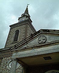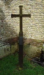 Following the fire in 1944 a wooden cross remained standing on top of the bell turret, and this has been re-erected to the left of the porch on the site of the west wall of the Norman church; it is in memory of John Romer Gurney who died in 1932. |