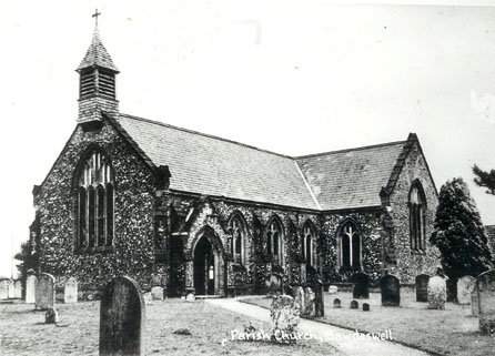 Building of the new church The War Damages Commission rebuilt the church in 1953: the design Neo-Georgian by J Fletcher-Watson, a Norwich architect. The Rector, the late Revd H G B Folland, who had arrived in Bawdeswell only a few weeks before the plane crash, showed great fortitude in organising the building of the new church. The architect J Fletcher-Watson also designed the Bishop’s House in Norwich. The Quantity Surveyors were Messrs Philip Pank & Partners. The main contractors were H C Greengrass & Sons Ltd. The foreman in charge of works was Mr Baldry. War damage compensation provided £15,000 for the new building and the parishioners raised a further £5,000 for its furnishings and extras. The congregation used a Primitive Methodist Chapel in the village until the church was completed. Prime costs were £12,500 but the spire added almost £700, furnishing £1,000 and the organ £650. Other fittings and furnishings such as windows and electrics made up the balance. Work started in March 1953. The foundation stone at the west end of the church was laid by Sir Edmund Bacon, Bt. on 21st July 1953. The completed church was